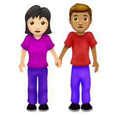 | المعنى | رجل وامرأة يمسكان بيد بعضهما: بشرة بلون فاتح وبشرة بلون معتدل |