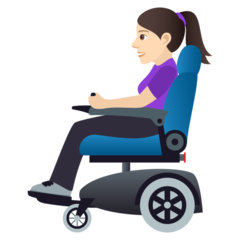 | المعنى | سيدة على كرسي متحرك كهربائي: بشرة بلون فاتح |