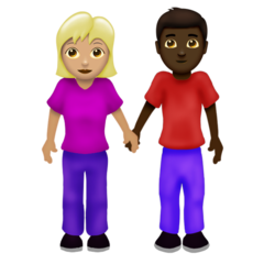 | المعنى | رجل وامرأة يمسكان بيد بعضهما: بشرة بلون فاتح ومعتدل وبشرة بلون غامق |