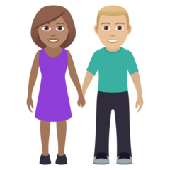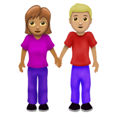 | المعنى | رجل وامرأة يمسكان بيد بعضهما: بشرة بلون معتدل وبشرة بلون فاتح ومعتدل |
