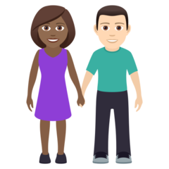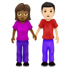 | المعنى | رجل وامرأة يمسكان بيد بعضهما: بشرة بلون معتدل مائل للغامق وبشرة بلون فاتح |