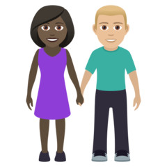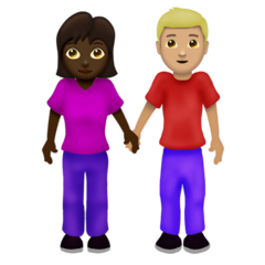 | المعنى | رجل وامرأة يمسكان بيد بعضهما: بشرة بلون غامق وبشرة بلون فاتح ومعتدل |