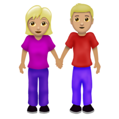 | المعنى | رجل وامرأة يمسكان بيد بعضهما: بشرة بلون فاتح ومعتدل |