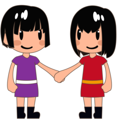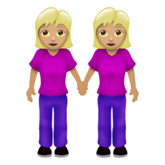 | المعنى | امرأتان تمسكان بيد بعضهما: بشرة بلون فاتح ومعتدل |