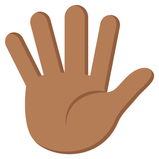 | المعنى | يد مرفوعة بأصابع متفرقة: بشرة بلون معتدل مائل للغامق |