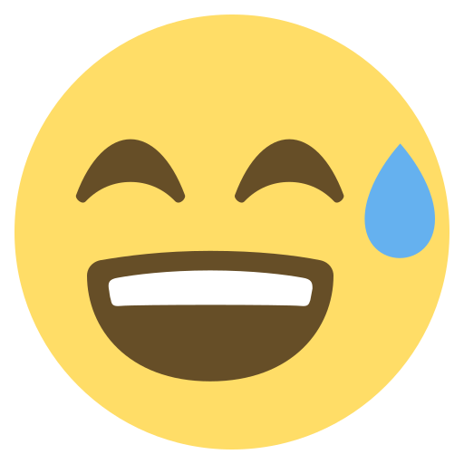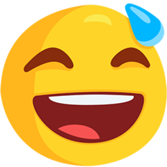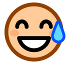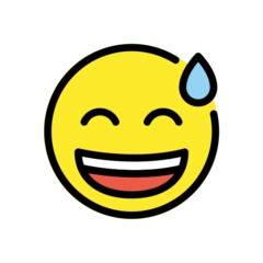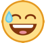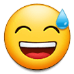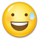 | المعنى | وجه مبتسم بفم مفتوح وعرق بارد |