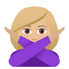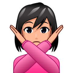 | التمثيل البرمجي | U+1F645 1F3FC 200D 2640 1F645 - 🙅 إشارة رفض |