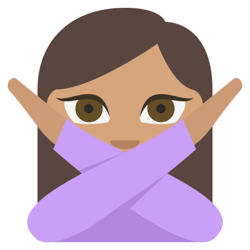 | التمثيل البرمجي | U+1F645 1F3FD 1F645 - 🙅 إشارة رفض |