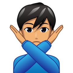 | التمثيل البرمجي | U+1F645 1F3FD 200D 2642 1F645 - 🙅 إشارة رفض |