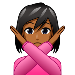 | التمثيل البرمجي | U+1F645 1F3FE 200D 2640 FE0F 1F645 - 🙅 إشارة رفض |
