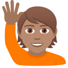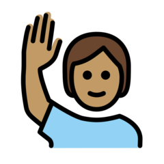 | المعنى | شخص يرفع يده: بشرة بلون معتدل |