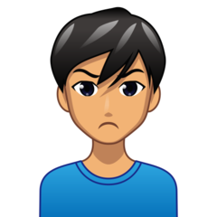 | التمثيل البرمجي | U+1F64E 1F3FD 200D 2642 FE0F 1F64E - 🙎 شخص متجهم |
