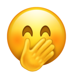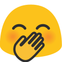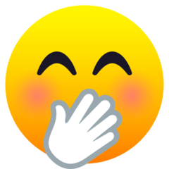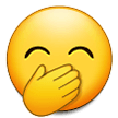 | المعنى | وجه ضاحك مع يد تغطّي الفم |