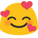 | المعنى | وجه مبتسم مع ثلاثة قلوب |